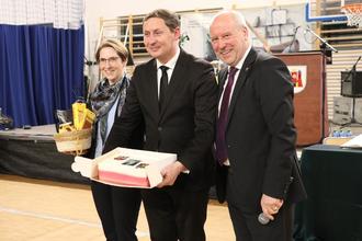 Der Höhepunkt des Abends kam mit der feierlichen Eintragung in das Goldene Buch der Stadt Guben durch den Gubiner Bürgermeister Bartczak. Als Anerkennung für seine 18-jährige Amtszeit und sein unermüdliches Engagement für die Doppelstadt Guben-Gubin. Gleichzeitig ein bedeutender Abschied, da Bartlomiej Bartczak bei den anstehenden Kommunalwahlen im April dieses Jahres nicht mehr als Bürgermeisterkandidat für Gubin antreten wird. Im Gegensatz dazu verzeichnete Bürgermeister Fred Mahro im März dieses Jahres sein 30-jähriges Dienstjubiläum in der Verwaltung, wobei er seit Januar 2012 als amtierender Bürgermeister in Guben und seit August 2018 als gewählter Bürgermeister der Stadt Guben fungiert. Die herzliche und freundschaftliche Beziehung zwischen den beiden Bürgermeistern wurde von Fred Mahro als eine Beziehung auf Augenhöhe beschrieben, vergleichbar mit jener unter Sportlern, geprägt von Fairness, individueller Stärke und dem gemeinsamen Streben nach Erfolg.