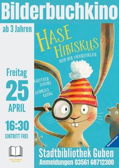 Ach, du heiliger Hasenpups! Am Freitag, 25. April 2025, um 16:30 Uhr wird es spannend in der Stadtbibliothek Guben: Beim nächsten Bilderbuchkino für Kinder ab 3 Jahren dreht sich alles um „Hase Hibiskus und der Möhrenklau“.