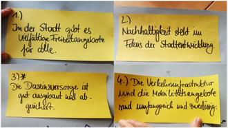 Mit dem neuen Workshop-Format #udesignguben sollen Jugendliche in das Smart City Projekt einbezogen werden. Hier geht es um die Frage, wie das Guben der Zukunft aussehen muss, damit sie nach Ausbildung und Studium zurückkehren. Die Ideen der Teilnehmenden werden dokumentiert, evaluiert und nach Möglichkeit in die Realisierung der Smart City-Maßnahmen einfließen. Der Auftakt fand im 11. Klasse Leistungskurs Geografie am Pestalozzi-Gymnasium Guben statt. Als wichtigste Themen nannten die Teilnehmenden Freizeitgestaltung, Nachhaltigkeit, Digitalisierung, Mobilität und die Daseinsvorsorge. Hieraus entwickelten sie gemeinsam mit dem Projektteam vier Zielbilder für ihr Guben der Zukunft.