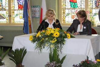 Nach den Grußworten der Gäste präsentierte die Euroregion Fördermöglichkeiten, mit denen durch die Schulpartnerschaften entstehende Projekte finanziell unterstützt werden können. Anschließend erfolgte die feierliche Unterzeichnung der Vereinbarungen mit den polnischen Schulen, der Höhepunkt des Abends. Vereinbart wurden Partnerschaften mit der Grundschule Nr. 1 in Gubin, der Grundschule Nr. 2 in Zielona Góra, der Grundschule Nr. 13 in Zielona Góra sowie dem Liceum in Gubin. Beim anschließenden Empfang gab es viele Gelegenheiten, neue Kontakte zu knüpfen, Ideen auszutauschen und Zukunftsvisionen zu entwickeln.