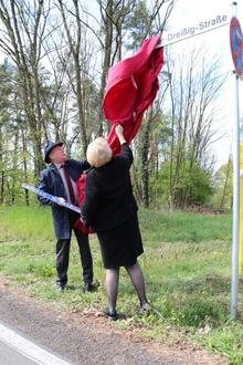 Cornelia Dreißig und Fred Mahro bei der gemeinsame Enthüllung des Straßenschildes