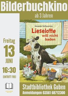 Am Freitag, 13. Juni 2025, um 16:30 Uhr lädt die Stadtbibliothek Guben Kinder ab drei Jahren zum beliebten Bilderbuchkino ein. Gezeigt wird die fröhliche Geschichte „Lieselotte will nicht baden“.
