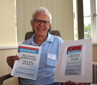 Guben, 13. Mai 2025 – Zum zweiten Mal in Folge erhält Dr. med. Boguslaw Gracz das renommierte „Focus Gesundheitssiegel“. Der Gefäßchirurg betreibt seine Praxis am Diakoniekrankenhaus Naëmi Wilke Guben und gehört laut Focus Gesundheit erneut zu den empfohlenen Medizinern in Deutschland.