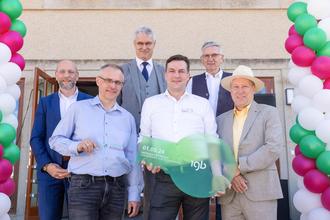 GSW-Geschäftsführer Dr. Martin Reiher erhält zur Eröffnung den symbolischen Schlüssel.