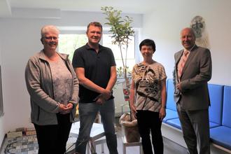 Am 15. Juni 2023 verabschiedete Bürgermeister Fred Mahro (r.) gemeinsam mit Fachbereichsleiterin Nadine Städter (l.) die langjährig praktizierende Kinderärztin Dr. med. Angela Melchert in den wohl verdienten Ruhestand. Jahrzehnte stand sie im treuen Dienste der kleinen Bürgerinnen und Bürger unserer Stadt. Als kleine Erinnerung überreichte Bürgermeister Fred Mahro ein Apfelbäumchen, welches den Garten der Kinderärztin schmücken soll. Die Praxis wird nun weitergeführt von Marco Thiele, als Praxis für Kinder- und Jugendmedizin. Wir wünschen einen angenehmen Ruhestand.