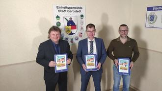 (v. l. n. r.): Nach der Vertragsunterzeichnung: MIDEWA-Geschäftsführer Uwe Störzner , Bürgermeister der Einheitsgemeinde Stadt Gerbstedt, Ulf Döring, sowie MIDEWA-Geschäftsführer Julien Malandain
