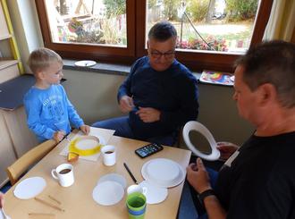 Nach einer leckeren Stärkung mit Kaffee, Tee und Kuchen wurden gemeinsam mit den Omas und Opas voller Vorfreude und Kreativität die Laternen für den bevorstehenden Laternenumzug gebastelt.