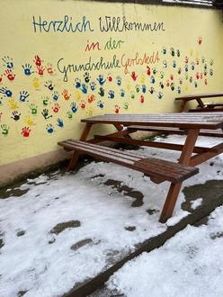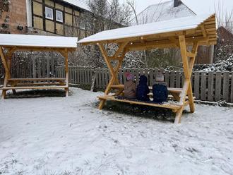 In der Grundschule Gerbstedt wurden zwei neue Sitzraufen in der "Grünen Oase" aufgestellt.