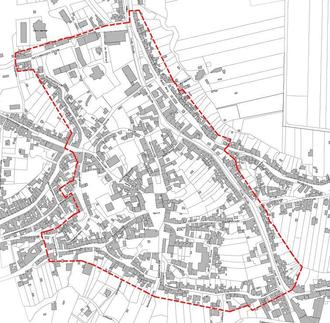 Lageplan mit beabsichtigter räumlicher Abgrenzung der Sanierungsaufhebungssatzung für das Sanierungsgebiet „Gerbstedt-Ortskern“ (rote Strichlinie)