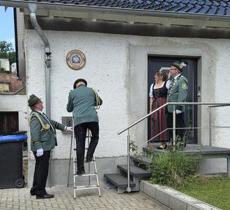 Am 30. Mai hat das amtierende Königspaar, Dina Müller und Thomas Jeske den Verein zum Anbringen der Königsscheibe zu Ihrem Grundstück in Friedeburg, geladen. Mit dem Befestigen der Königsscheibe, durch seine Adjutanten Holger Fischeder und Maik Sappok, wurde das Eigenheim zum Königshaus ernannt. Danach wurde ein Ehrensalut geschossen und den Umtrunk konnten wir bei schönstem Wetter im Garten genießen. Wir möchten uns bei unserem Königspaar für die gute Bewirtung und beim Nachbarn für die musikalische Umrahmung recht herzlich bedanken.