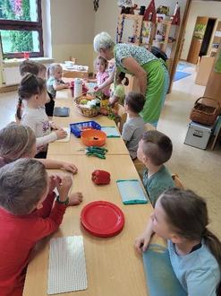 Am 03.07.2024 war es mal wieder soweit, dass Frau Simonsen von den Landfrauen zu uns in die Kita kam, um mit den Kindern ein gesundes Frühstück vorzubereiten.