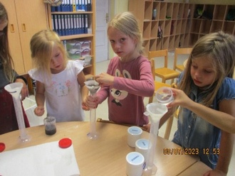Mit Unterstützung der Midewa-Experimentierbox begann unsere letzte Ferienwoche. Hier hatten die Kinder die Möglichkeit, sich praktisch an verschiedenen Experimenten rund um das Thema „Wasser“ zu beteiligen. Sie beobachteten in verschiedenen Gruppen wie viel Wasser sie zum Hände waschen benötigen und stellten erhebliche Unterschiede fest, sowohl im Ablauf als auch im Wasserverbrauch. Dabei wurden die Kinder zum sparsamen Umgang mit Wasser sensibilisiert. Sie lernten den Kreislauf des Wassers zu verstehen, bestimmten den pH-Wert verschiedener Wasserproben und beobachteten, wie die Wasseraufbereitung durch Filtern funktioniert.