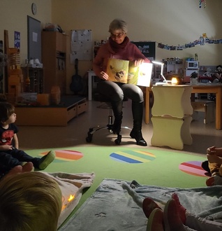 In der Krippe war ebenfalls ein besonderer Vormittag. Es kamen zwei Elternteile zu Besuch, die uns jeweils eine Geschichte vorließen. Wir lauschten dabei den Geschichten „Der Igel kommt allein zurecht“ und „Bei der Feuerwehr wird der Kaffee kalt“ gespannt zu. Passend zu den Inhalten der Bücher, dekorierten wir gemütlich unseren Morgenkreis in der Krippe. Wir hatten ein schönes Beisammensein und konnten viel Freude, beim Kennenlernen der Geschichten miteinander teilen!