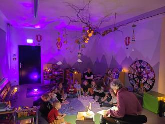 Gespannt lauschten die Kinder der vorgelesenen Geschichte bei magischem Lichter- und Kerzenschein
