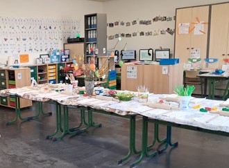 Wer nun auf hausgebackenen Kuchen Appetit bekam, konnte diesen in unserem Schulkaffee zu sich nehmen oder einpacken lassen. Dafür haben die fleißigen Muttis, Omas … der 4. Klasse gesorgt.