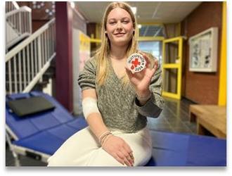 Foto: Junge Erstspenderin, die nach ihrer Blutspende die Information über ihre Blutgruppe erhält; ©DRK-Blutspendedienst Nord-Ost