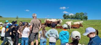 Hier lernten die Kinder viel über die heimische Rindfleischzucht kennen. Sie besuchten den Kuhstall mit den Jungbullen und auch die Weide mit den Mutterkühen und ihren Kälbern.