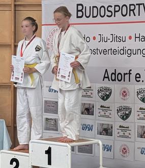 Josephine Jakoby konnte sich dagegen in Adorf beim Auto-Gyra-Cup am 18.08.24 erfolgreich durchsetzen. Nachdem sie im ersten Kampf mit einer Festhalte ihre Gegnerin 20 Sekunden am Boden kontrollieren konnte, ging es im nächsten Kampf schon um Platz 1. Diesen entschied Josephine mit einer Wurftechnik souverän für sich.