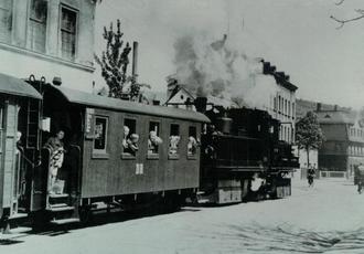 Nach einer 15-minütiger Verspätung rollte der von der Bevölkerung lang erwartete Zug vom unteren Bahnhof los und passierte in der nächsten halben Stunde die festgelegten sechs Haltestellen bis zum Endbahnhof in Oberheinsdorf. „Die Straße von der Altstadt hinaus an das Stadtende war besetzt von harrenden Personengruppen … um den wichtigsten Vorgang dieses Tages mit zu durchleben“.