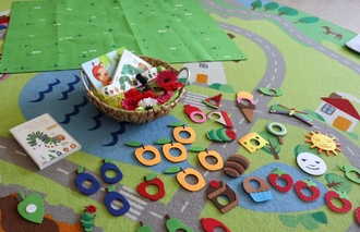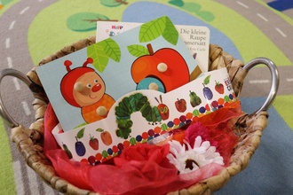 Im August zog bei den Minis die kleine Raupe Nimmersatt ein, die ganz schön großen Hunger hatte. Unser Themenkörbchen war ganz im Zeichen unseres Projektes. Gemeinsam haben wir das Buch „die kleine Raupe Nimmersatt“ angeschaut und die Geschichte der kleinen Raupe miterlebt. Danach gestalteten wir ein großes Plakat, auf dem die Kinder die Geschichte nachgestellt haben. Außerdem gab es ein schönes Lied zum Thema, was wir laut im Morgenkreis gesungen haben. Auch in der Küche waren wir fleißig gewesen. Es gab einen leckeren Kuchen in Form der kleinen Raupe Nimmersatt. Das Projekt hat uns allen große Freude bereitet. Wir konnten sehr kreativ sein und die Welt der kleinen Raupe auf ganz unterschiedliche Arten erleben.