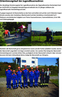 Der diesjährige Orientierungslauf der Jugendfeuerwehren des Regionalbereiches Reichenbach fand am 16.09.2023 im Ortsgebiet Heinsdorfergrund anlässlich des 25-jährigen Jubiläums der Jugendfeuerwehr Heinsdorfergrund statt.