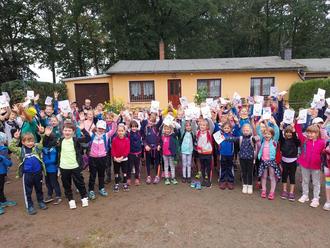 Am 14. September starteten alle Kinder der Grundschule Hauptmannsgrün zu Fuß zum Sportplatz am Mühlteich. An acht Stationen konnten wir nach einer lustigen Aufwärmrunde unser Geschick bei Waldspielen zeigen. An der Station Zapfenziellauf mussten wir Hindernisse mit einem Zapfen auf dem Löffel umlaufen. Beim Zapfenzielwurf ging es um zielsicheres Werfen. Für verschiedene Ringe gab es Punkte. Slalom liefen wir beim Schlängellauf um die Waldbäume. Die Kleiderstaffel „Flinke Förster“ war sehr lustig. An der Sprunggrube mussten wir so weit es geht springen und konnten dann sehen, welches Tier genauso weit springt wie wir. Gute Teamarbeit war beim Ameisenlauf mit „3 Beinen“ gefragt. Schnell ins Ziel laufen, ohne hinzufallen. Beim Waldarbeiterstaffellauf gab es Hindernisse und ein vier gewinnt. Gewonnen haben nicht die schnellsten, sondern die, die zuerst 4 in einer Reihe hatten. Die letzte Station war Wald und Wiese, das war ein Hüpfspiel wie Himmel und Hölle.