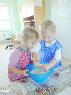 Wir machen sehr gerne wöchentliche Ausflüge zu den Tieren unseres Dorfes Hauptmannsgrün. Besonders toll finden wir Truthähne, Alpakas, Ziegen und Rehe. Wir freuen uns immer sehr, wenn die Tiere schon auf uns warten und uns begrüßen. Doch heute war es ein besonderer Ausflug. Nachdem wir alle Tiere beobachtet hatten, bekamen wir auch noch leckere Äpfel von Familie Meyer geschenkt. Eine große Tüte voll. Wir wollten sie gleich, zum Nachtisch probieren. Sie waren so lecker, dass wir beschlossen, kleine Apfelmuffins daraus zu backen. Gleich am nächsten Tag nach dem Frühstück sollte es los gehen und wir bereiteten unsere Backstube vor.