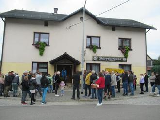 Zum Abschluss erreichte die Gruppe das alte Gemeindeamt, das bis zur Wende die Verwaltungsräume des Dorfes beherbergte. Hier endete der geschichtliche Teil des Rundganges, bevor es zum gemütlichen Ausklang auf dem Sportplatz Hauptmannsgrün ging.