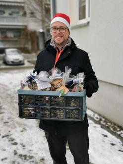 Stadtteilmanager Lutz Michen beim Verteilen der Plätzchen.