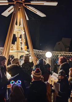 Am 02. Dezember 2023 war es so weit. Die Pyramide, die durch die vielen fleißigen Helfer von Groß- und Kleinsedlitz in neuem Glanz erstrahlte, sollte durch den Gesang eines, nur für sie gedichteten Liedes, zu neuem Leben erweckt werden.