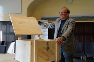 Bürgermeister Jürgen Opitz verschloss die Zeitkapsel am 30. Dezember 2024.
