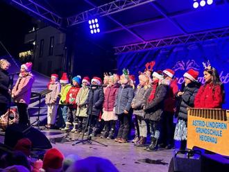 Am 12. Dezember rief die WVH alle Heidenauer zu einem gemeinsamen Singen auf dem Marktplatz auf. Stimmführend und beispielgebend war unser Schulchor mit unserer Chorleiterin Frau Sauer das Highlight des Nachmittages. Ein Sattelauflieger war unsere gut beleuchtete Bühne. Die von Frau Sauer gestaltete und gebundene Liedermappe verhalf auch den anwesenden Heidenauern zu mehr Textsicherheit. Herr Opitz, unser Bürgermeister, sang auch kräftig mit. Es war eine sehr schöne Atmosphäre der Gemeinsamkeit und der Besinnlichkeit - Volkslieder im Advent - eine schöne Tradition.