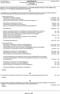 Die Stadt Heidenau gibt bekannt, dass gemäß § 76 Absatz 3 Gemeindeordnung für den Freistaat Sachsen (SächsGemO) in der Fassung der Bekanntmachung vom 09.03.2018 (SächsGVBl. S. 62), zuletzt geändert durch Artikel 2 des Gesetzes vom 29.05.2024 (Sächs. GVBl. S. 500) die Haushaltssatzung mit dem Haushaltsplan für das Haushaltsjahr 2025 in der Zeit