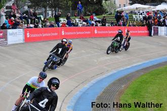 In den Pausen der Steherrennen wurde es historisch. Zum ersten Mal in der Geschichte der Radrennbahn fand eine sächsische Hochrad-Meisterschaft statt. In enger Zusammenarbeit mit dem Fahrradmuseum, dem Velocium, in Weinböhla um Steffen Stiller konnte dies organisiert werden. Je drei Starter standen in den Kategorien originale Hochräder und Replika am Start. Über 6 Runden und zwei Läufe suchten die Fahren ihren sächsischen Meister. Steffen Stiller (Originale) und Frank Albert (Replika) konnten sich am Ende über die Titel freuen.