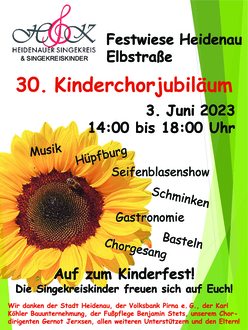Wir freuen uns, wenn viele Kinder unser Fest besuchen! Auch ehemalige Chorkinder laden wir herzlich ein, auf der Festwiese an der Elbe vorbeizukommen!