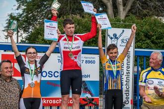 Bei den Erwachsenen fuhr Alexander Riedel mit. In Heidenau ist er bekannt als einer der beiden aktuellen Heidenauer Steher. Doch auch auf der Straße ist er unterwegs. Im Trikot des Mobil Krankenkasse Cyclingteams musste er sich in Haininchen nur einem Fahrer geschlagen geben und wurde 2.