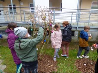 Wir schmücken jedes Jahr die Bäume der Seniorenanlage „Elbblick“ mit unseren bunten Eiern.