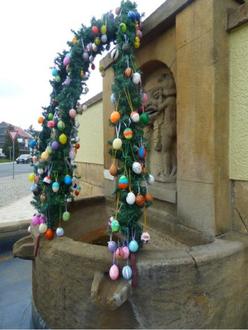 Auch der Rathausbrunnen wird von uns zu Ostern geschmückt.