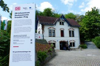 Am 25. Mai 2023 eröffnete das Infozentrum der Deutschen Bahn in Heidenau zur Neubaustrecke Dresden–Prag. Bürgermeister Jürgen Opitz besuchte das in der ehemaligen Pechhütte gelegene Infozentrum und konnte sich auf zwei Etagen umfassend über das Projekt informieren. Multimediale Ausstellungsstücke zeigen die tschechisch-deutsche Zusammenarbeit, den geplanten Streckenverlauf, die Geologie sowie den Tunnelbau. Das Infozentrum dient langfristig als Ort für Information und Austausch im Zusammenhang mit der Neubaustrecke Dresden–Prag.
