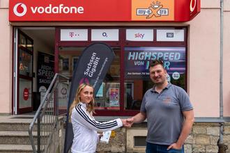 Das Handy Samsung Galaxy A16 5G konnte von den Mitarbeitern aus my-eXtra Heidenau an die strahlende Gewinnerin Hannah-Lina Wagner übergeben werden.