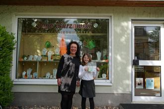 Frau Kurzawski aus der gleichnamigen Goldschmiede konnte Aurelia Ulbrich mit dem Überreichen eines Gutscheins aus ihrem Geschäft im Wert von 40,00 EUR glücklich machen.