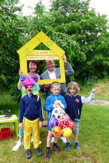 Annett Keller mit Bürgermeister Jürgen Opitz beim 25-jährigen Jubiläum des Kinderhauses Annett