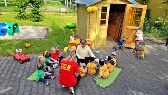 Tue Gutes und rede darüber. Das sagt schon ein bekanntes Sprichwort. Auch wir Tagesmütter in Heidenau wollten uns ins Gespräch bringen und uns im Rahmen der Aktionswoche Kindertagespflege zeigen. Wir, das sind Steffi (Steffi’s Bärenfreunde), Katrin („Die kleinen Wilden“) und Manuela (Manu’s Krümelstube). Unser Spielplatz auf dem Gelände der ehemaligen Kita Kunterbunt sollte ein Anlaufpunkt für Gespräche und Einblicke sein. Mit gelben Luftballons, einer gelben Obstpause und gelben Blumen putzten wir uns heraus.