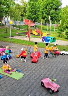 Den abgegrenzten Spielbereich und die zur Verfügung stehenden Spielgeräte nutzen wir sehr gern.
