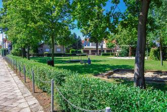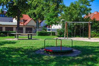 Derzeit sind auf dem Spielplatz u.a. eine Tischtennisplatte, eine Drehscheibe und eine Doppelschaukel angeordnet.