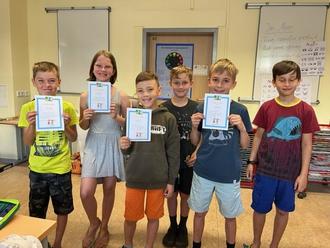 Am 26. Juni 2023 trafen sich aus jeder Klasse die besten Kopfrechner und traten miteinander in einen Wettstreit. Nach der ersten Runde von 20 Aufgaben konnten dann die jeweils 5 besten Rechner der Klassenstufe sich im direkten Vergleich messen.