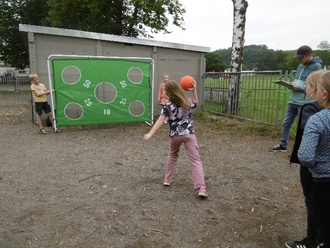 Die Feuerwehr kam mit einem Einsatzwagen, das Eismobil reiste an, im Angebot waren Torwandschießen, Schminken, eine Buttonstation, Dosenwerfen, Schach und natürlich eine Hüpfburg. Bei der vergangenen Kindertagsfeier wurde die Hüpfburg gestürmt, diesmal war es das Eismobil. Die Kinder hatten eine große Auswahl an Eissorten und jeder konnte sein Lieblingseis schlecken.