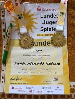 Am 1. Juli und 2. Juli 2023 spielte eine Mannschaft unserer Schachgruppen bei den Landes-Jugend-Spielen der Sparkasse in Dresden um wertvolle Punkte und erkämpften bei den Schulmannschaften den 1. Platz und präsentierten stolz ihre Goldmedaillen. Toll!