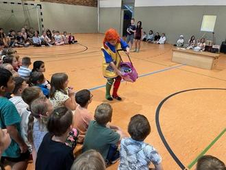 Die Kinder unserer Theater – AG spielten am vorletzten Schultag für alle Klassen ihre kleinen Stücke aus Astrid Lindgrens Büchern und wurden mit Beifall belohnt.