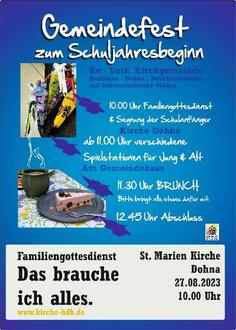| 10:00 Uhr | Gemeindefest zum Schuljahresbeginn Familiengottesdienstteam |